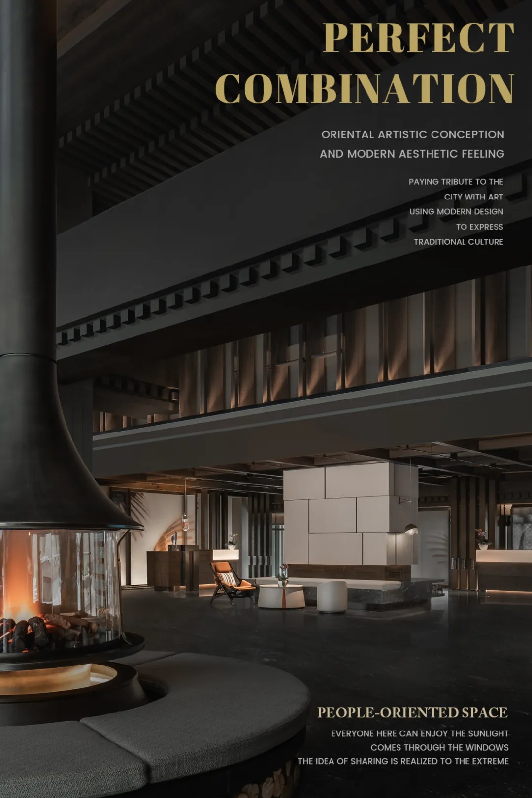 大堂的空間設(shè)計仿了神鷹視角,神鷹越飛越高,大堂的挑高也越來越高,有一種越往里走越豁然開朗的感覺。